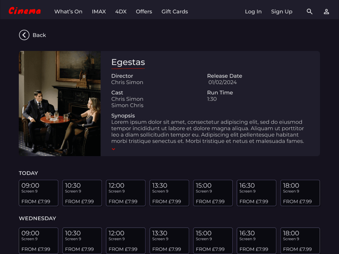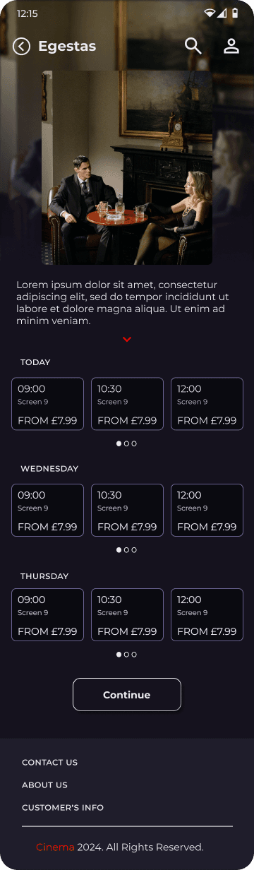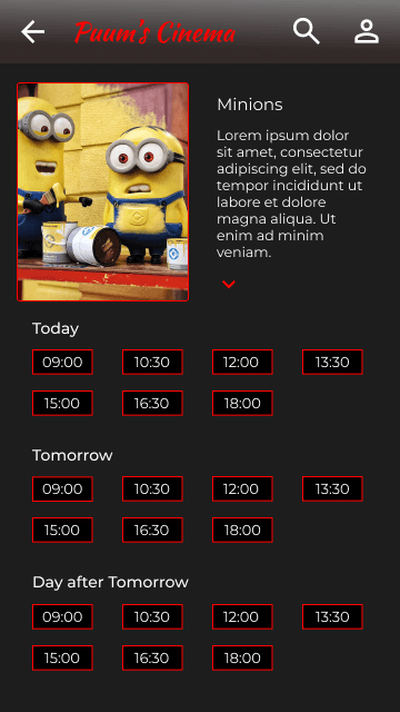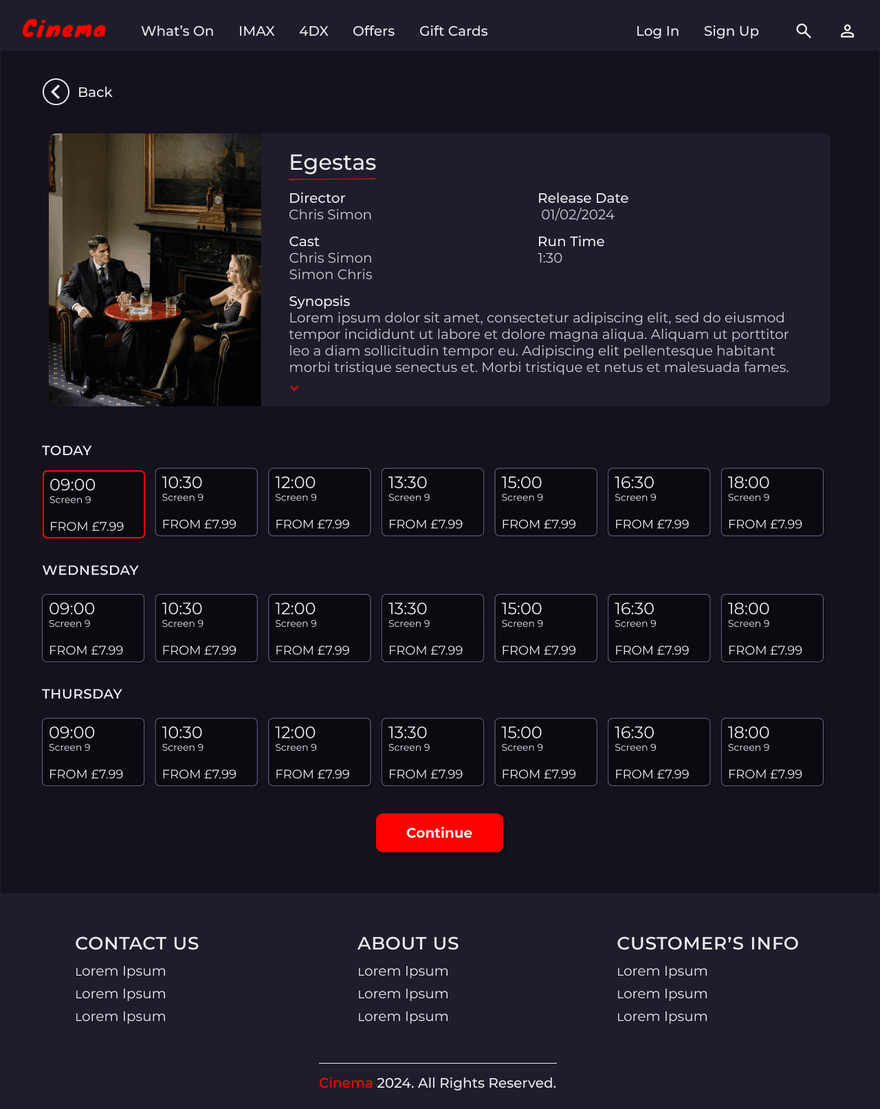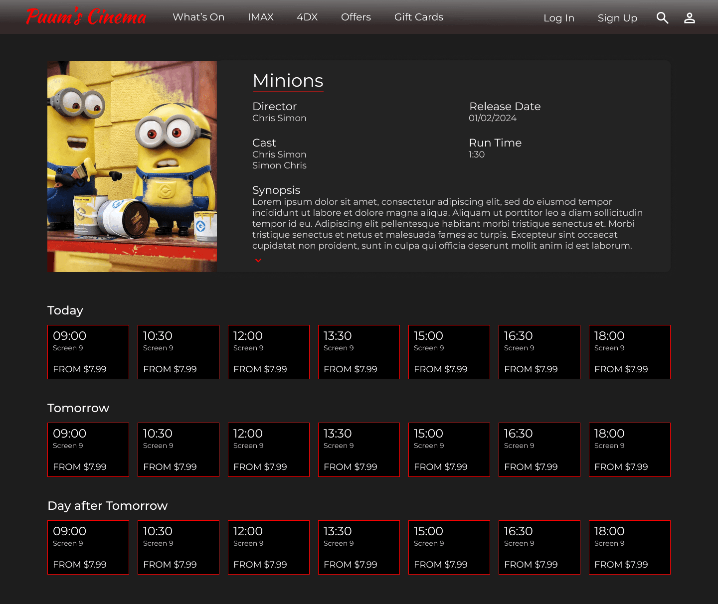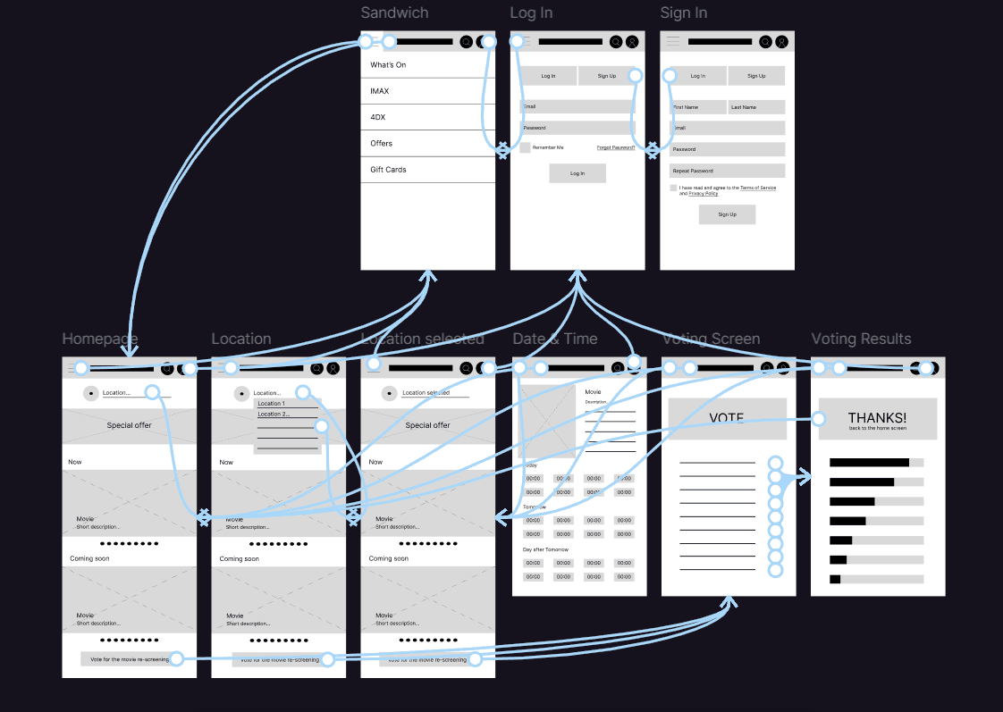 The final high-fidelity prototype presented cleaner user flows for ticket purchases. It also met user needs for movie re-screening as well as more customisation.