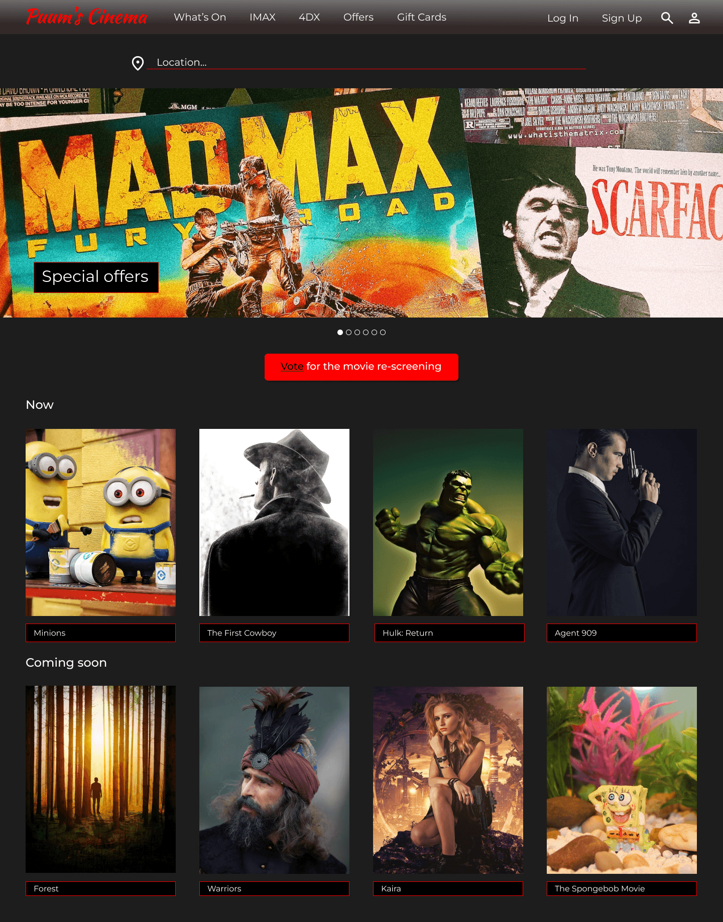 Design a website that allows users to book a tickets and vote for movie rescreenings.