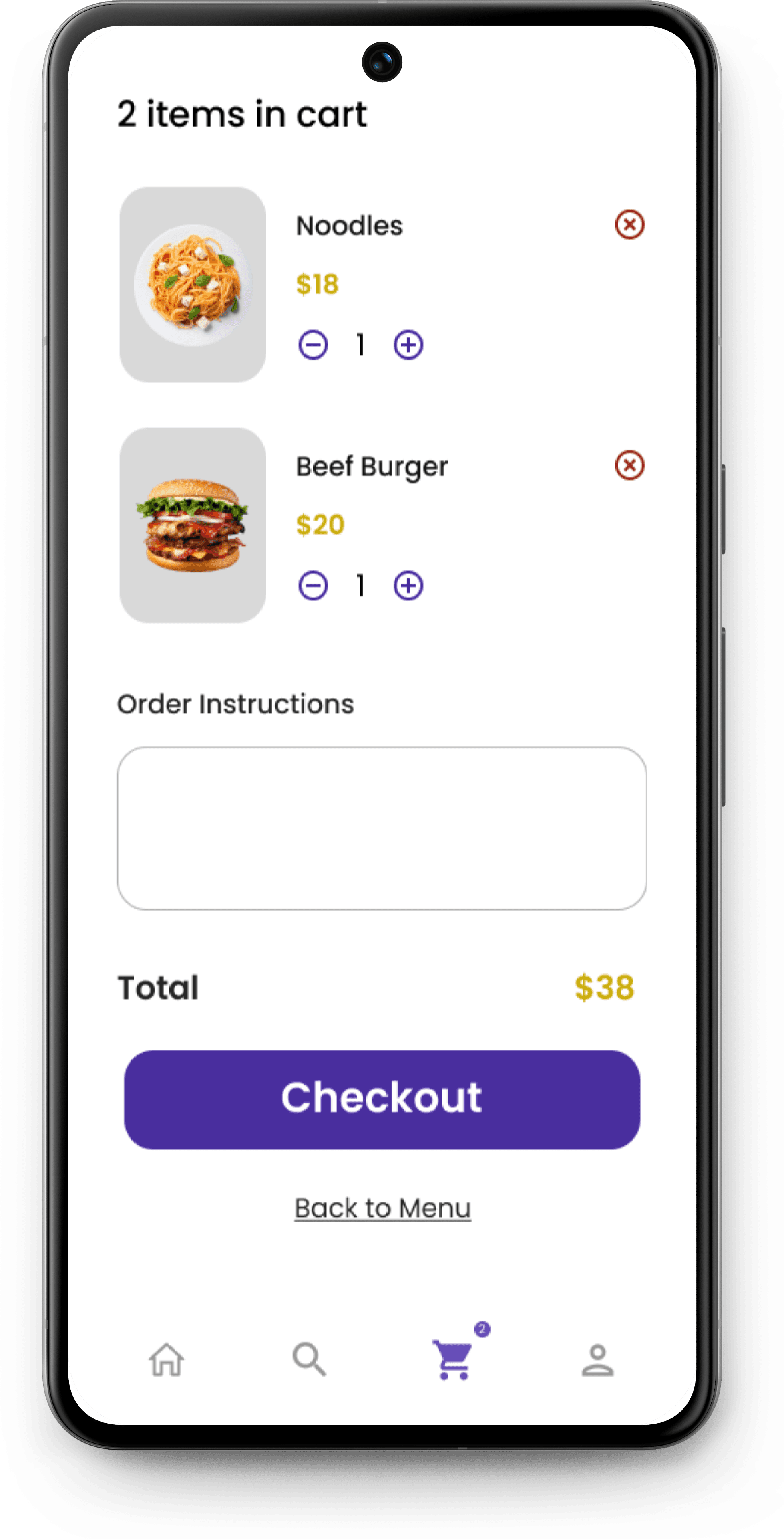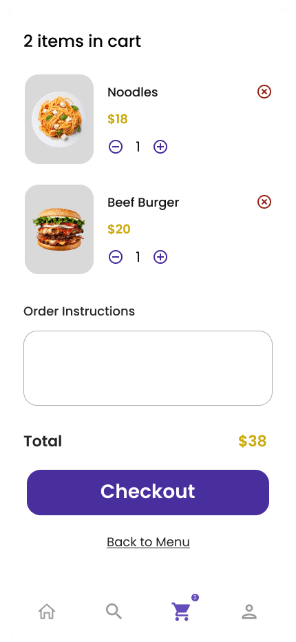 The quantity selectors and remove buttons make it effortless for users to modify their order before checkout.