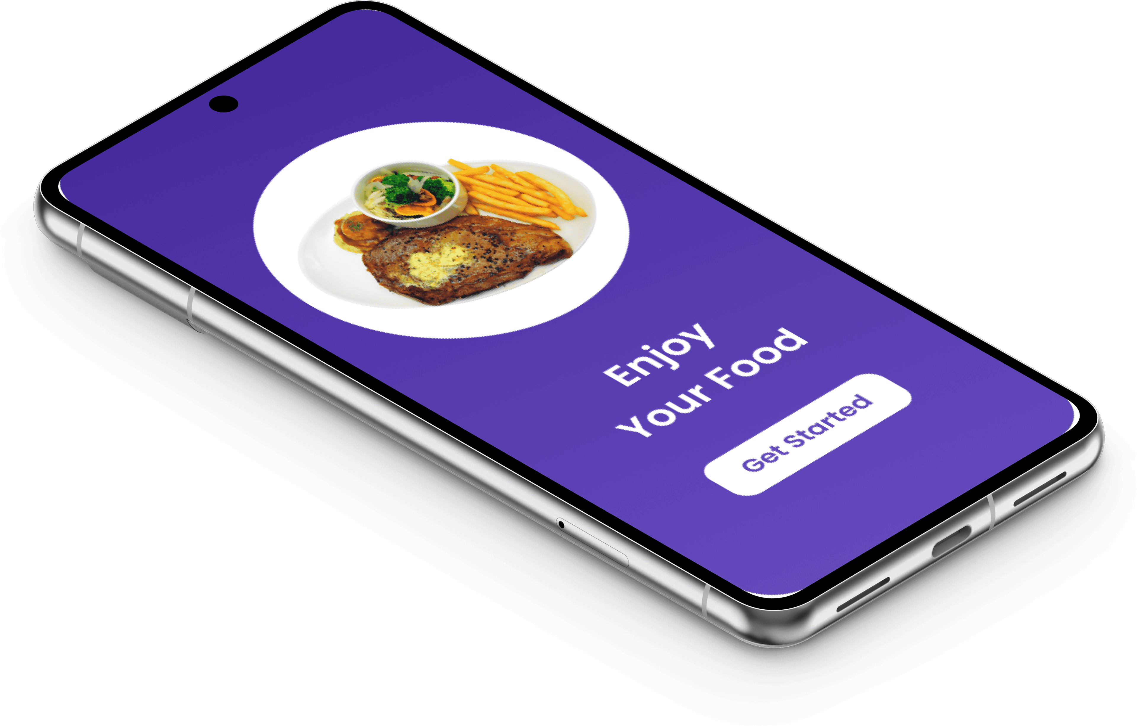 The first screen shows the splash screen for a food-related app. Its main purpose is to welcome the user, set the tone for the app and encourage them to begin their journey.