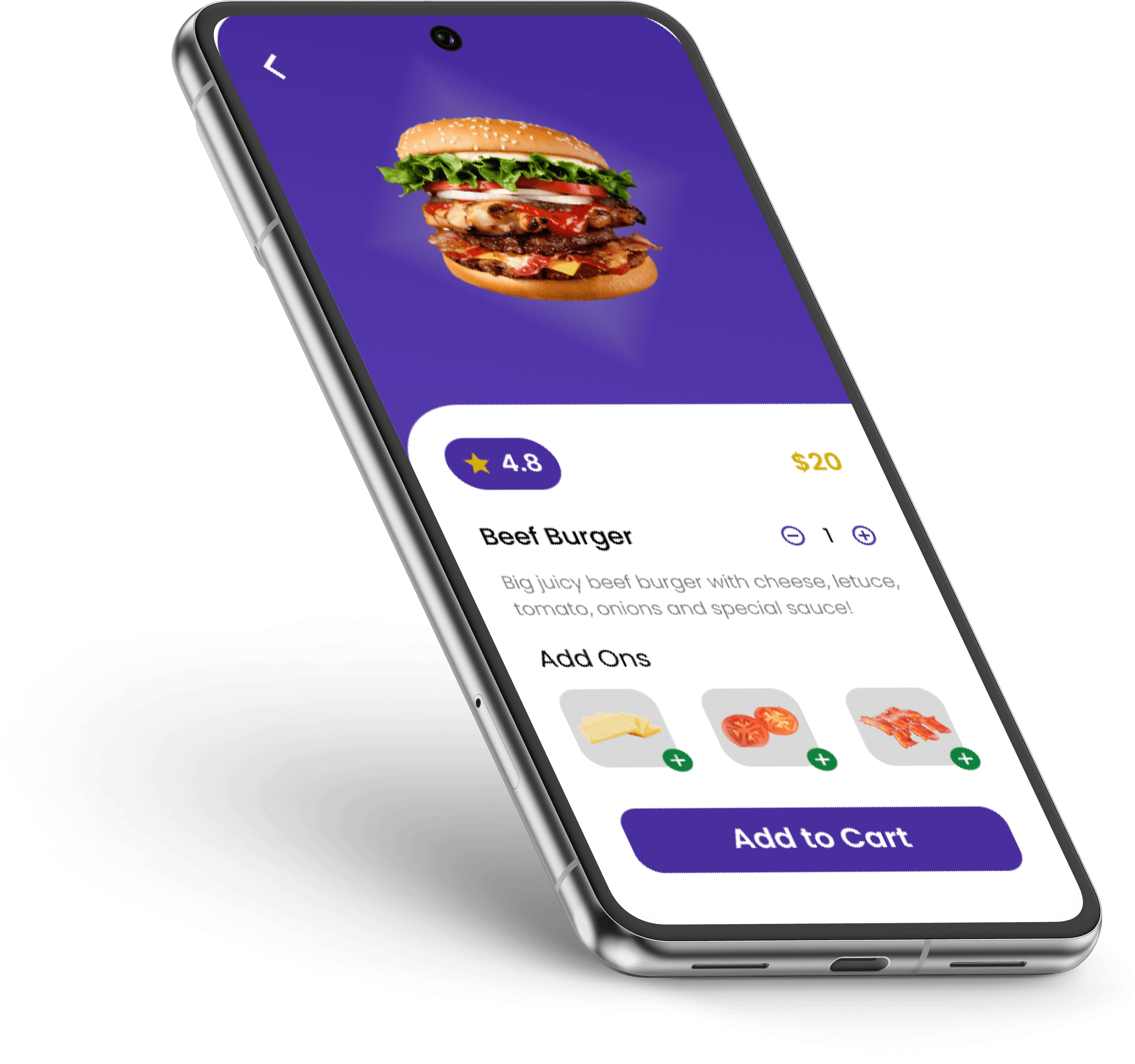 "Add to Cart" serves as the primary call to action. It stands out and is easy to tap, guiding the user to complete their order.